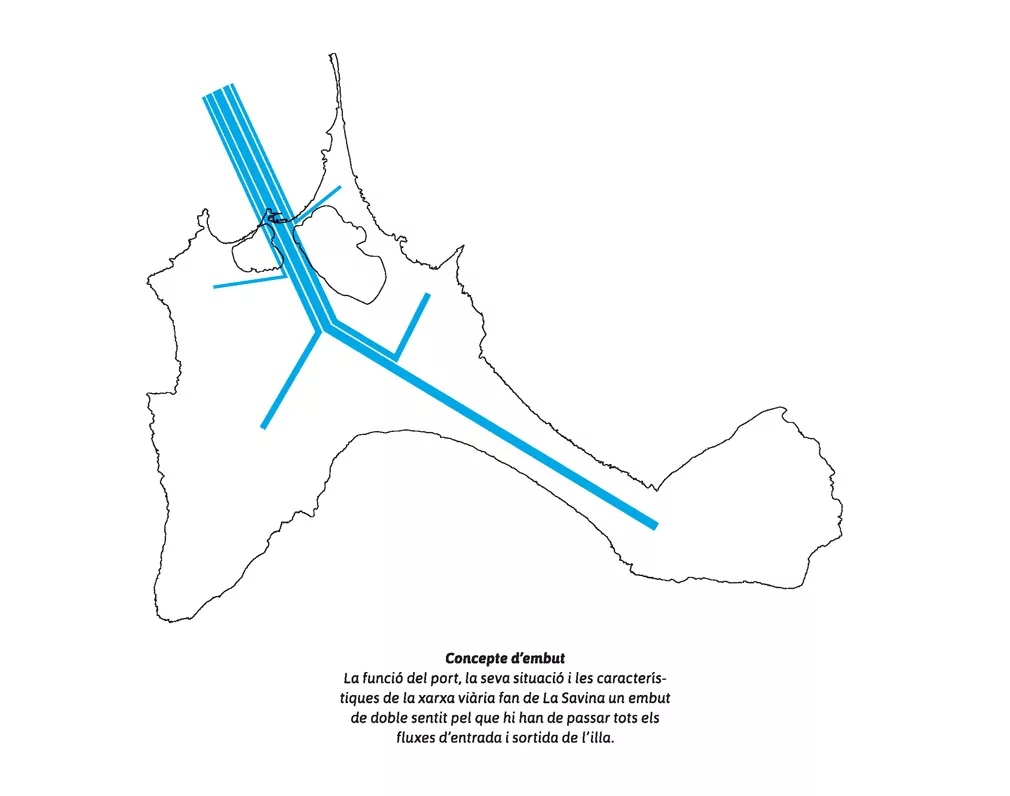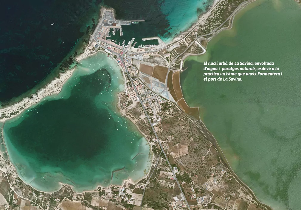 La Savina és, per a Formentera, l’únic enllaç cap a la resta del món. El port i el poble són l’exemple més visible de les conseqüències del model actual de creixement. El port i l’espai urbà estan envoltats per terrenys naturals protegits, sense extensió física possible i totalment envaïts pel trànsit del port i els problemes de mobilitat que això li suposa.