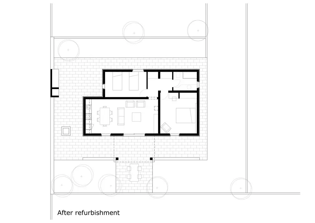 In a context in which it was not allowed to change the exterior appearance of the building, we had chosen to take advantage of the qualities of the exterior space to make it an extension of the building; with a barbecue area, an outdoor lounge and a relaxation area with hammocks.