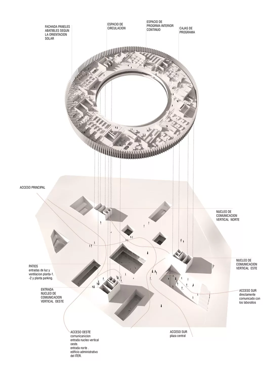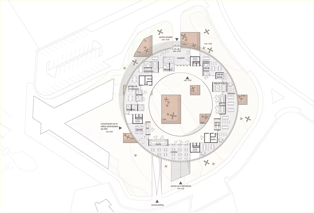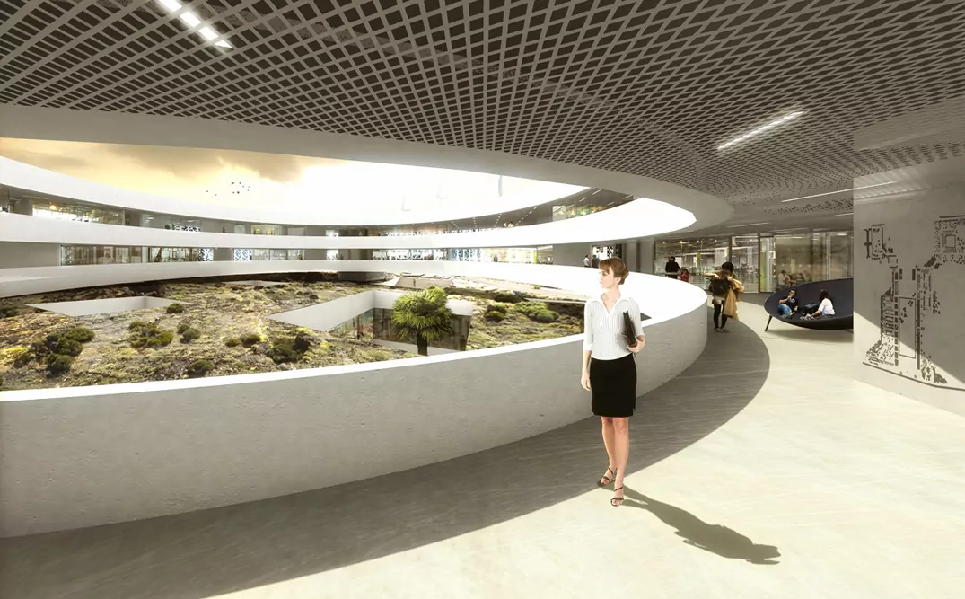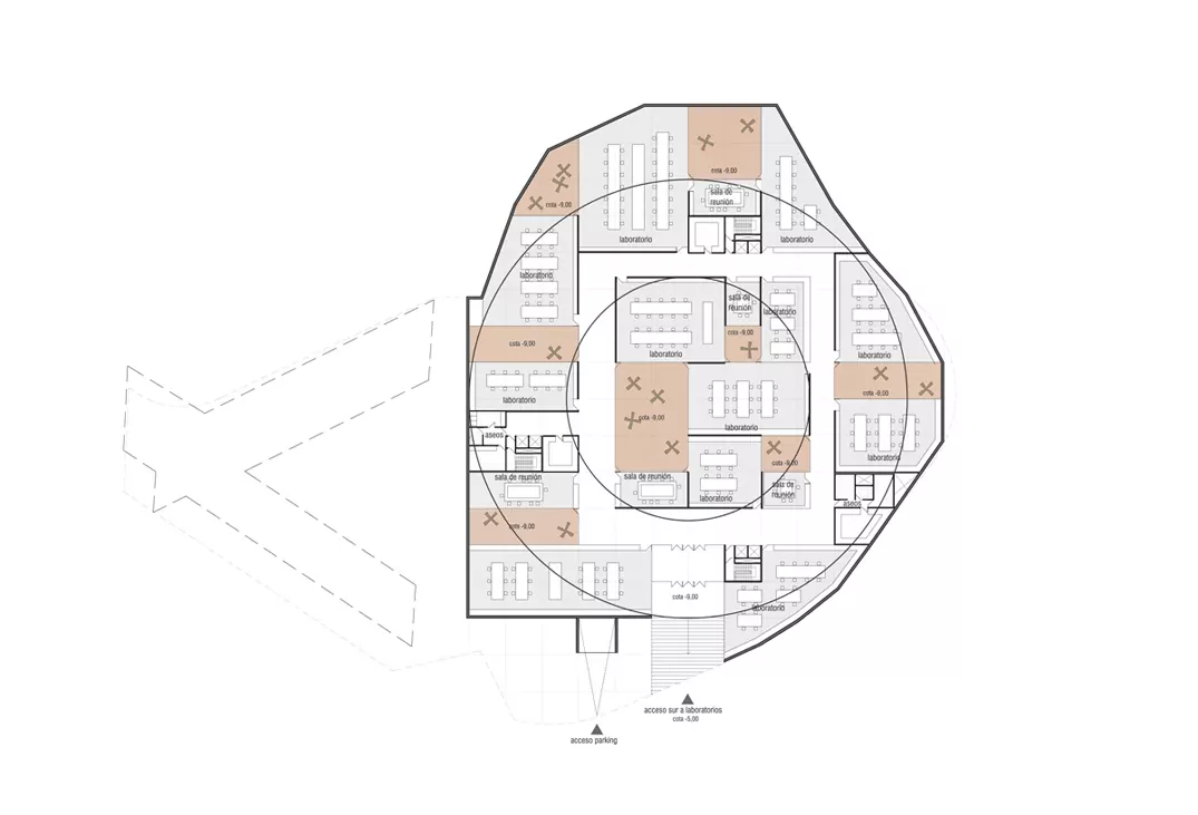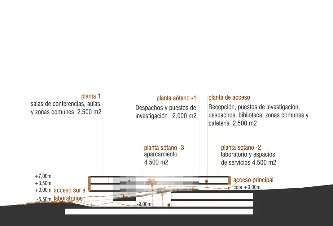 Program: Conference center (2.500 m²), offices and research (2.000 m²), shared areas (2.500 m²), labs (4.500 m²) and parking (4.500 m²)