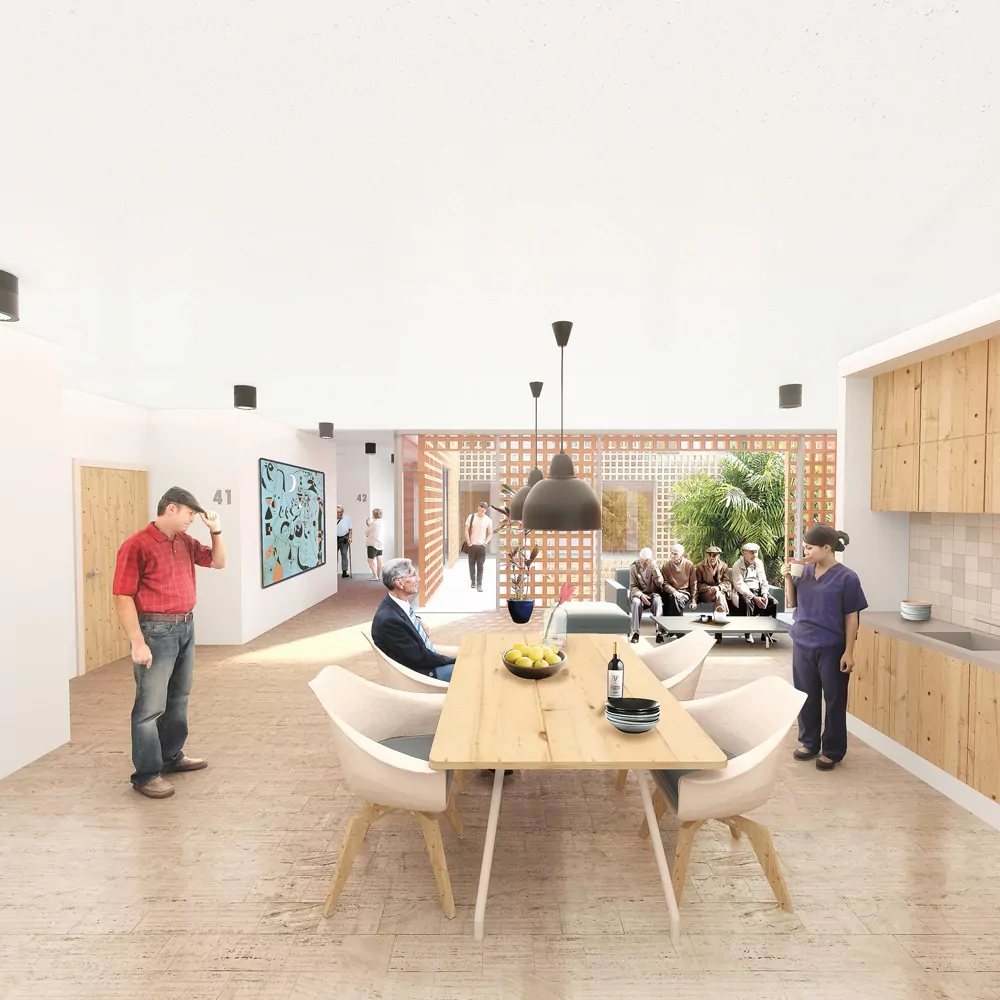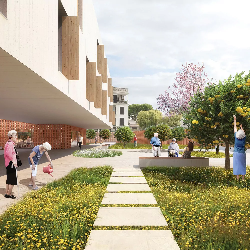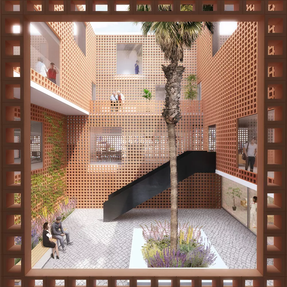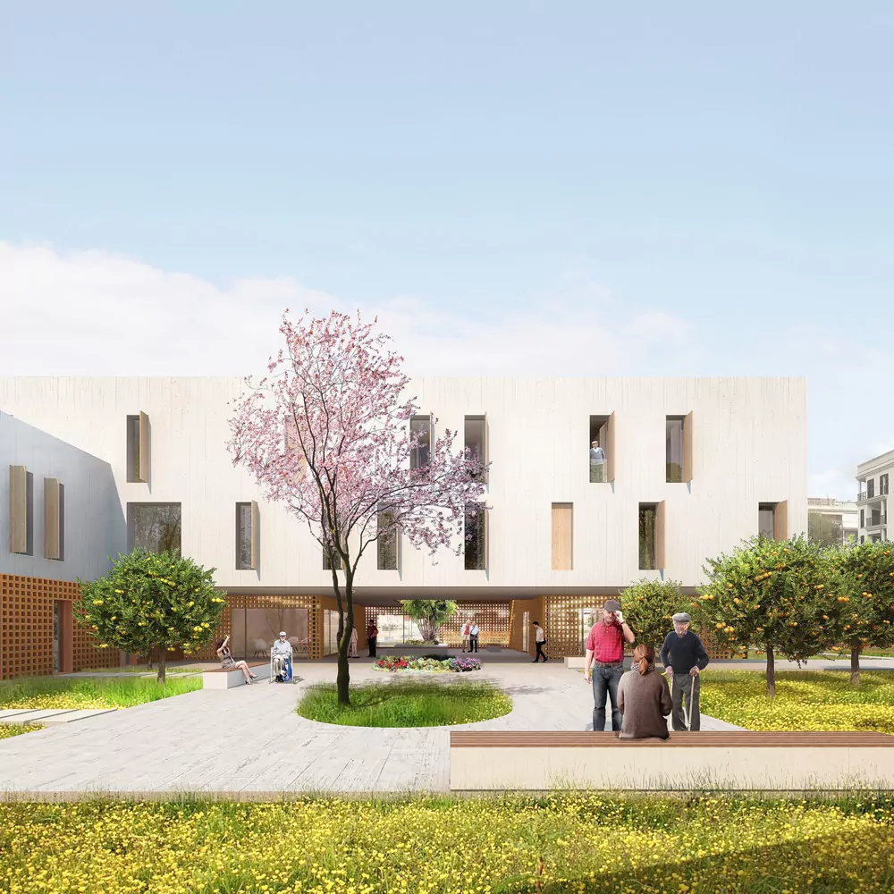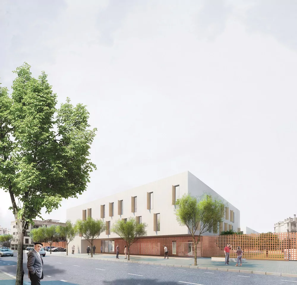The location of this building is an urban setting within walking distance to the seafront promenade and the boundary between urban and rural lands of orchards and crops. The context consisting of multi-family blocks isolated on a medium scale that does not allow the integration of a large building, therefore we propose the implantation of a building articulated in 3 volumes, this fragmentation reduces the visual impact of the new building and allows the correct integration into the urban fabric.
